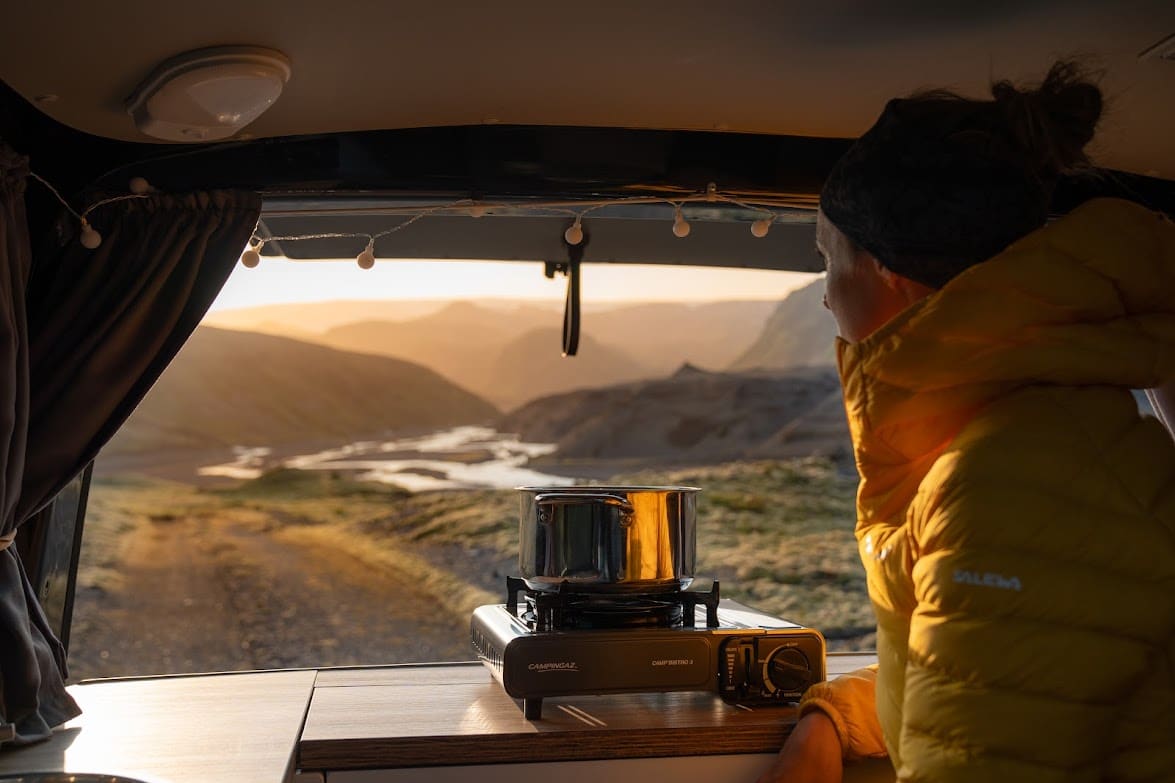 We looked at tons of campers for our 7 day road trip around the ring road and Cozy is the BEST! Our van came with everything we needed (pots + pans, mini portable stove, running water, utensils, bedding etc) and the design is amazing. We were never once cold at night because the heating system is great and the blankets are very warm